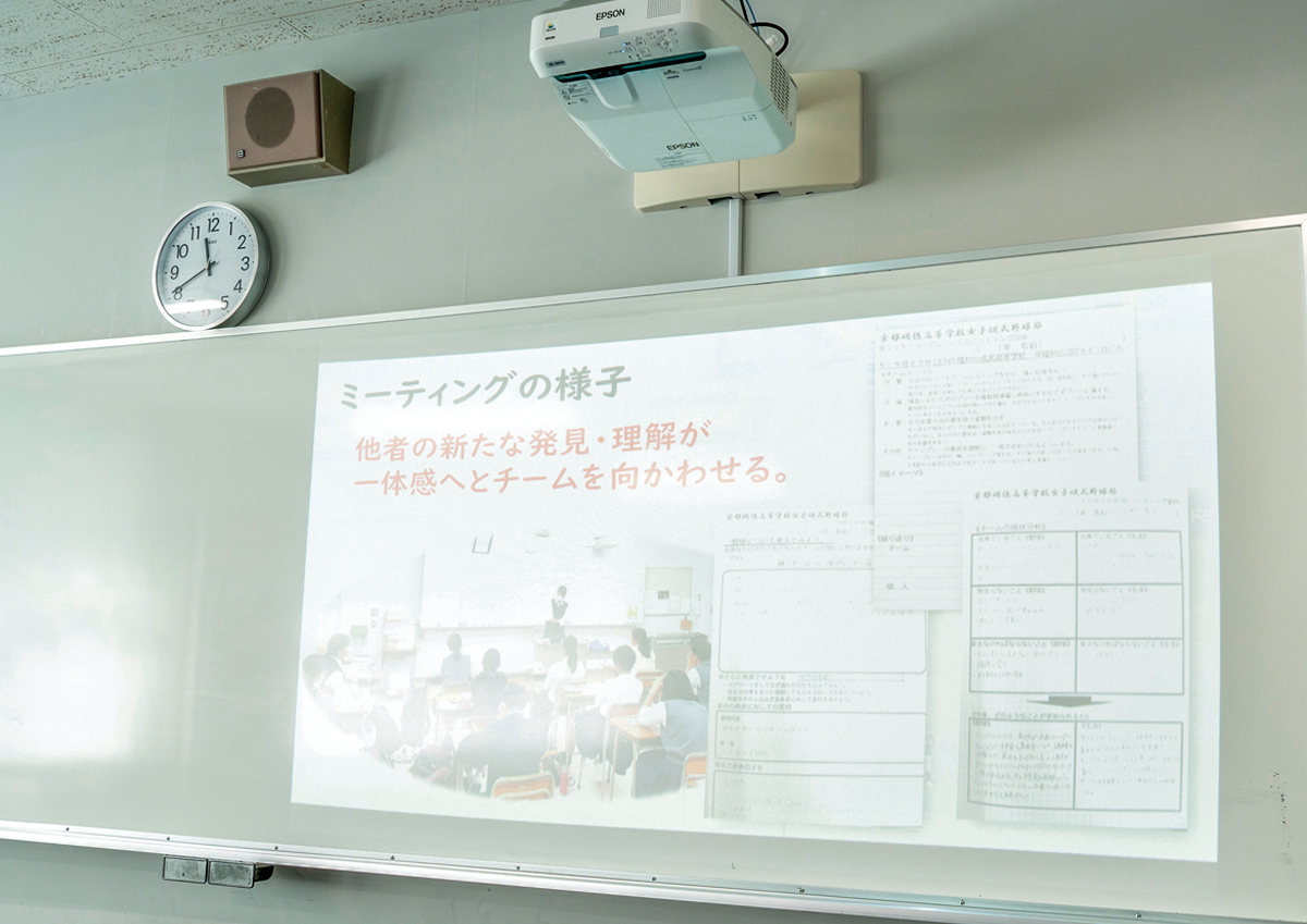 全HR教室に、ホワイトボード黒板を採用しています。同時に、プロジェクターを常設しています。電子黒板のデメリットであった、教室の中央に配置できない、画面サイズはテレビに依存するといった事が改善され、綺麗で見やすい環境が整っています。教師陣によるタブレット・ノートPCを活用した授業コンテンツは、「見やすく・分かりやすい」と好評です。